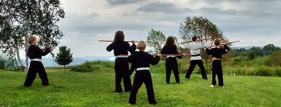 At Zanshin Ithaca Dojo you are part of centuries of tradition in the practice of Okinawan karate, Japanese jiu-jutsu, aiki-jutsu, and kobudo. Classes are a mix of indoors and outdoors based at EcoVillage Ithaca.